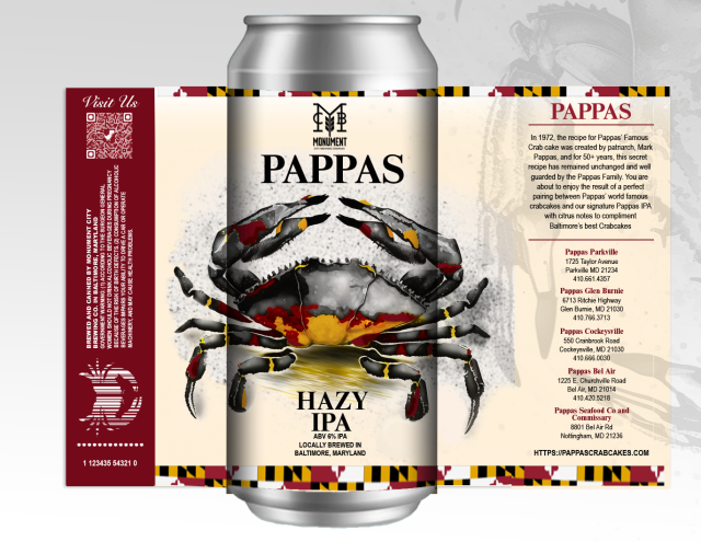Designing the Pappas Hazy IPA can was one of those rare opportunities where a fun art project, local pride, and a personal bucket-list goal all lined up perfectly. Pappas is a Maryland institution, Monument City Brewing is a hometown favorite, and I’ve always wanted to design a beer can—so getting the chance to create something for both of them felt like winning a tiny creative lottery.